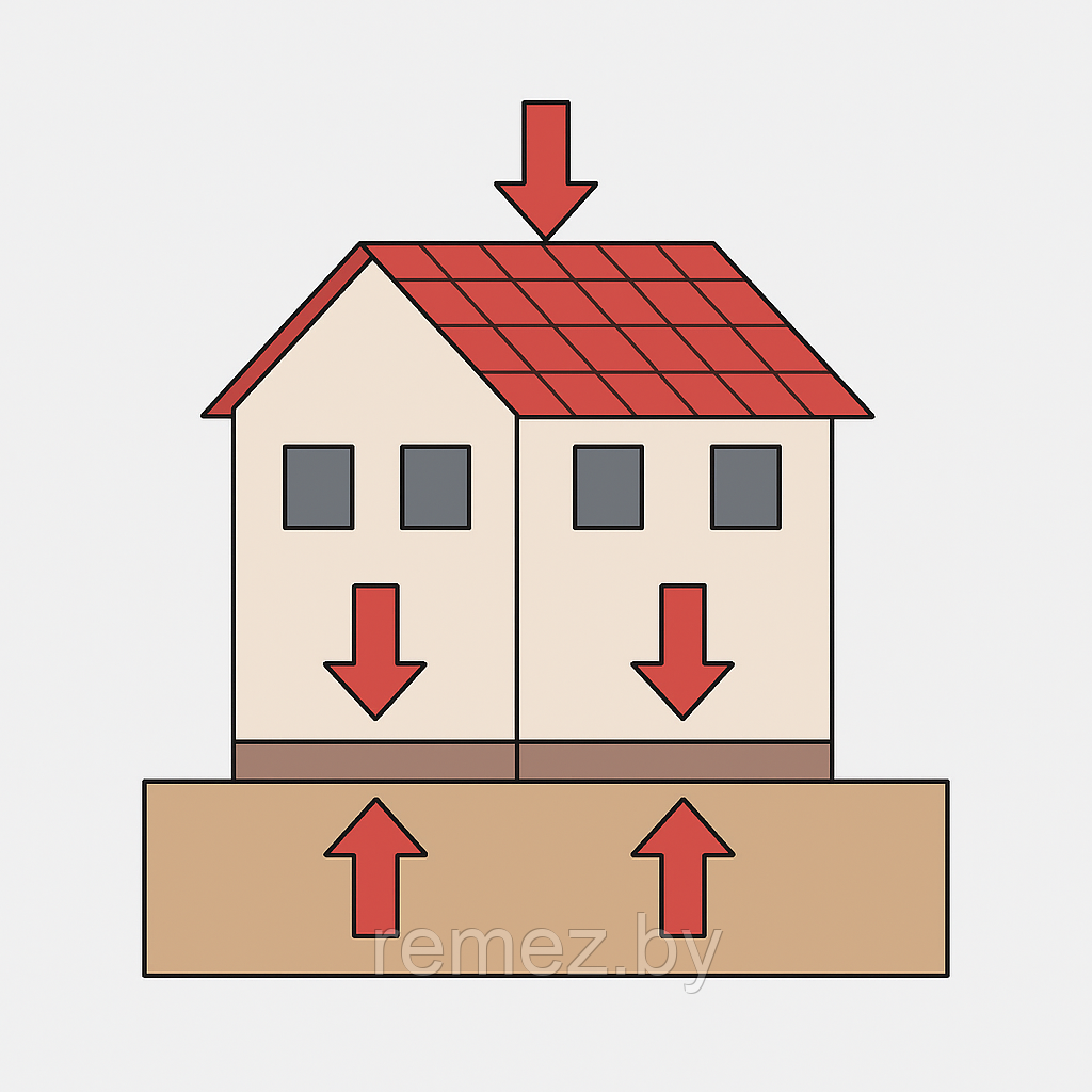 - Постоянные нагрузки — это собственный вес конструкций: фундамента, стен, перекрытий, кровельного покрытия, инженерных систем и отделки. Они всегда присутствуют и не меняются со временем.